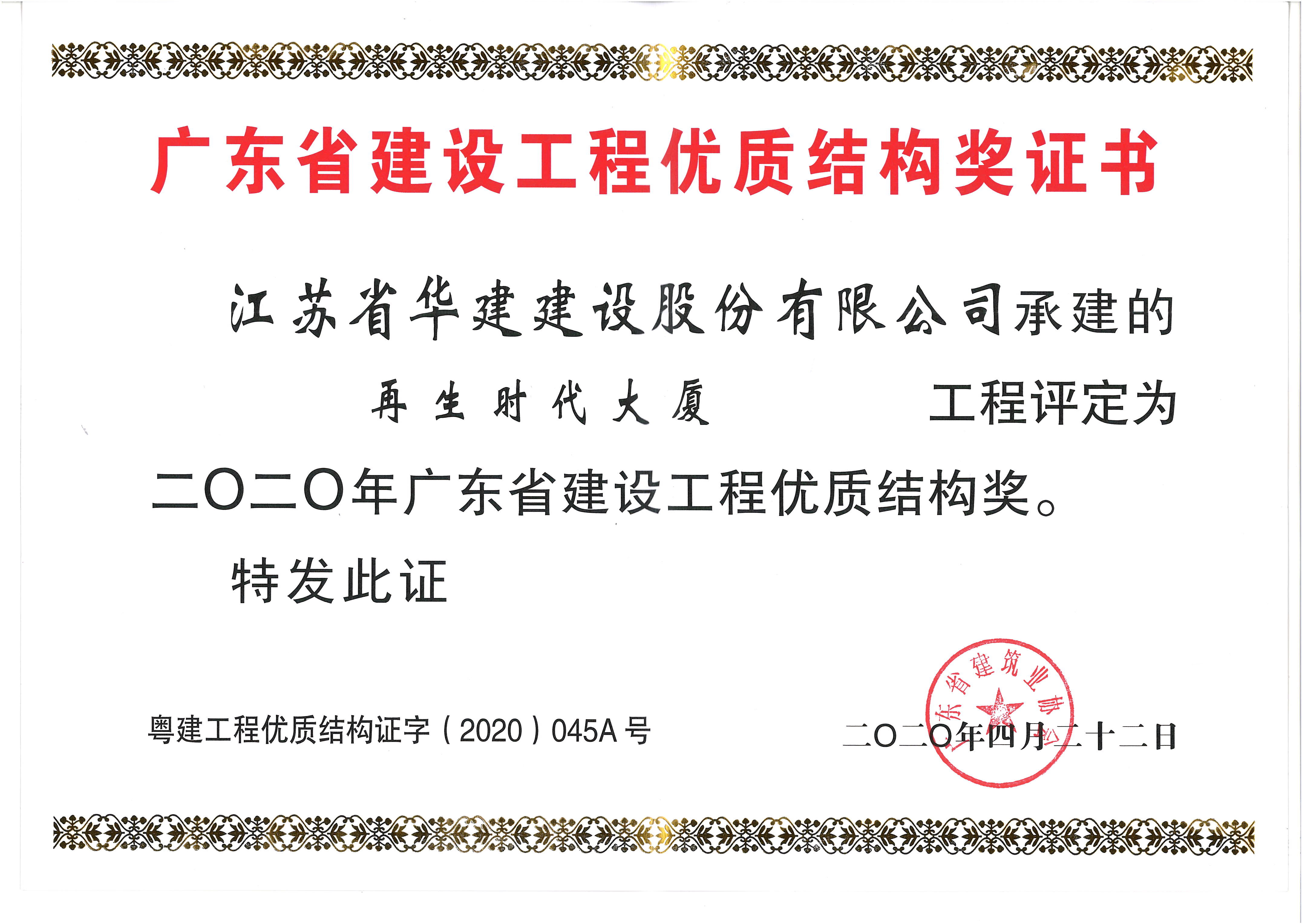 再生时代大厦获2020年广东省建设工程优质结构奖